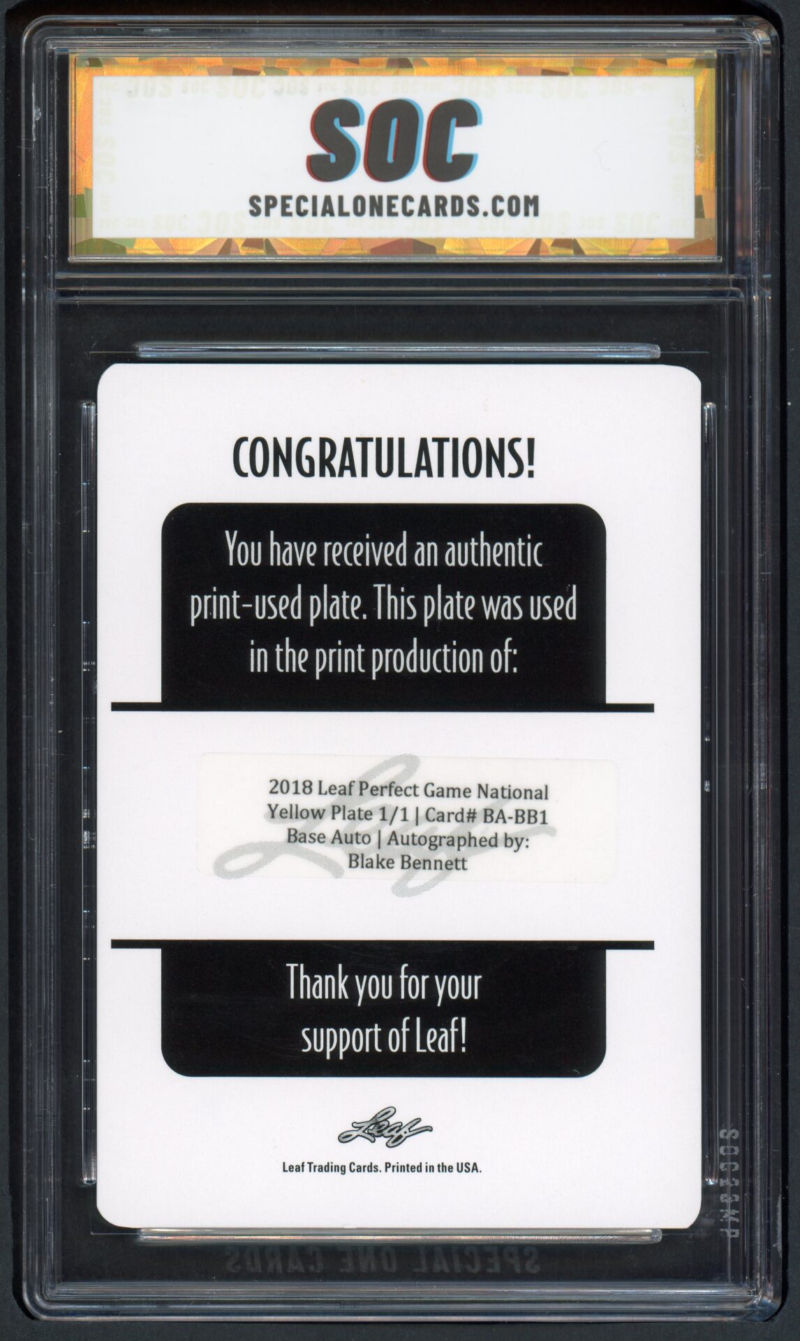 2018 LEAF #BABB1 BLAKE BENNETT PERFECT GAME NATIONAL SHOWCASE SOC POP1