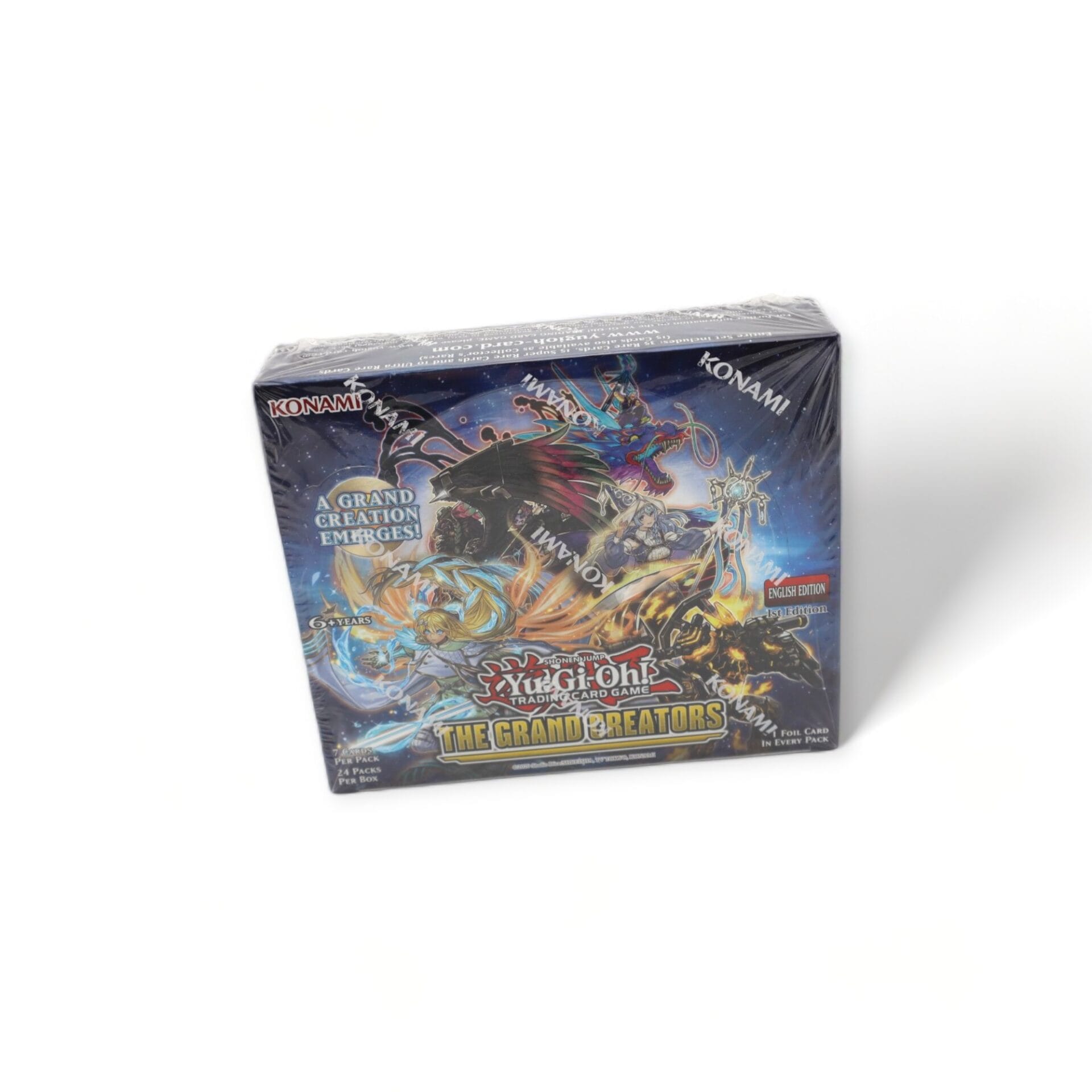 Revitalize your collection with The Grand Creators! This English 1st Edition set from KONAMI, Belgium, boasts 24 packs with 7 cards each, offering an unparalleled treasure trove for trading card enthusiasts.
